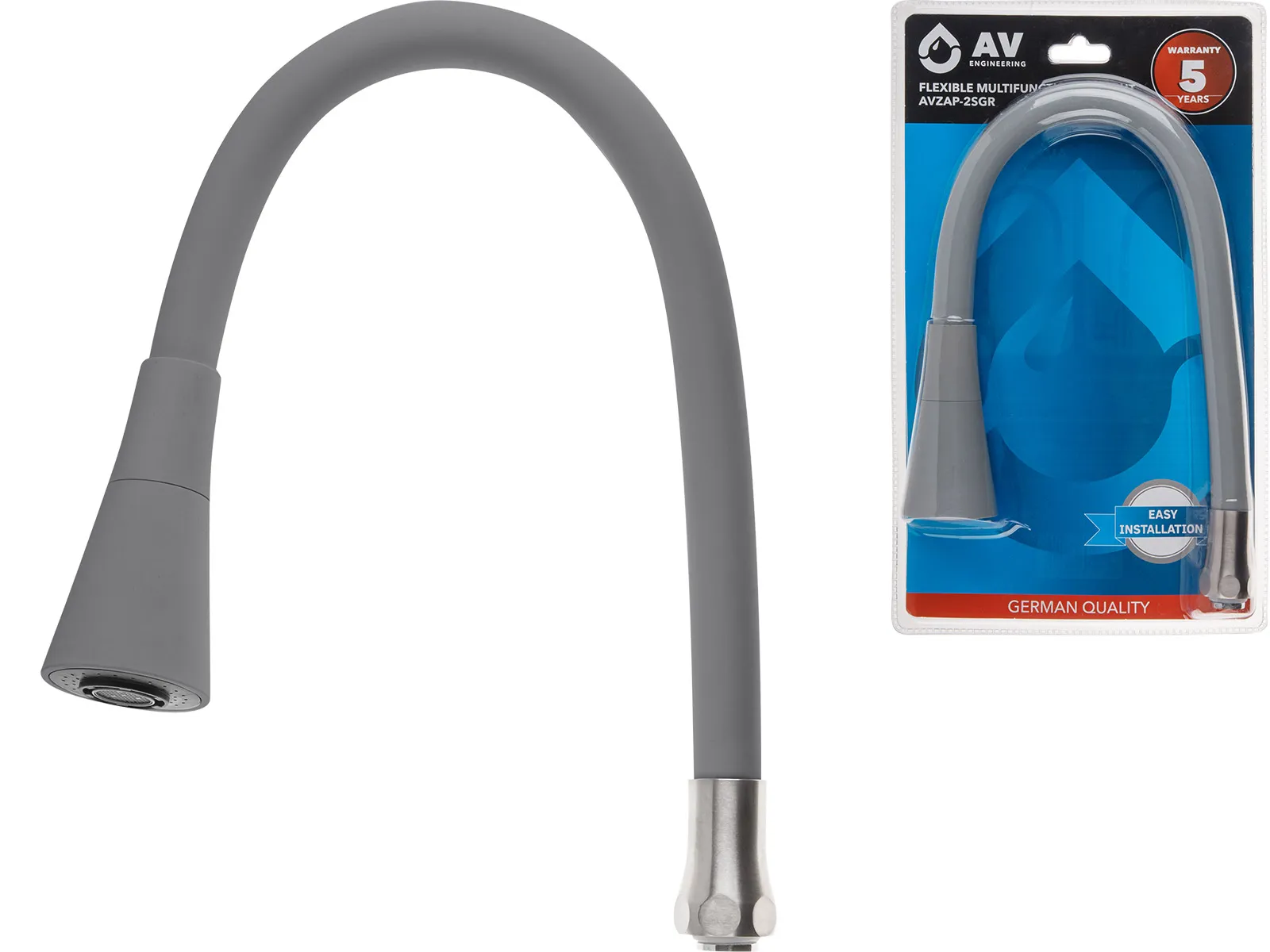 Излив гибкий с двухрежимной лейкой серый для смесителя, AV Engineering