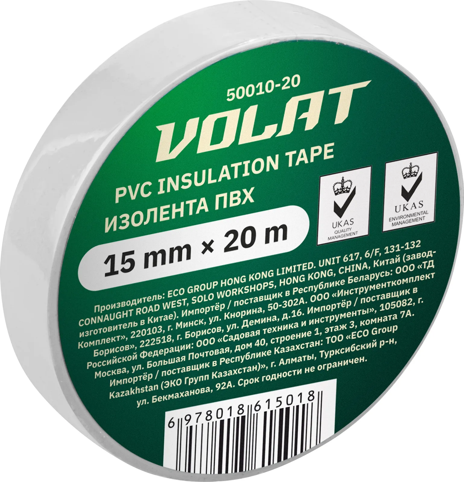Изолента ПВХ 15ммх20м белая ВОЛАТ