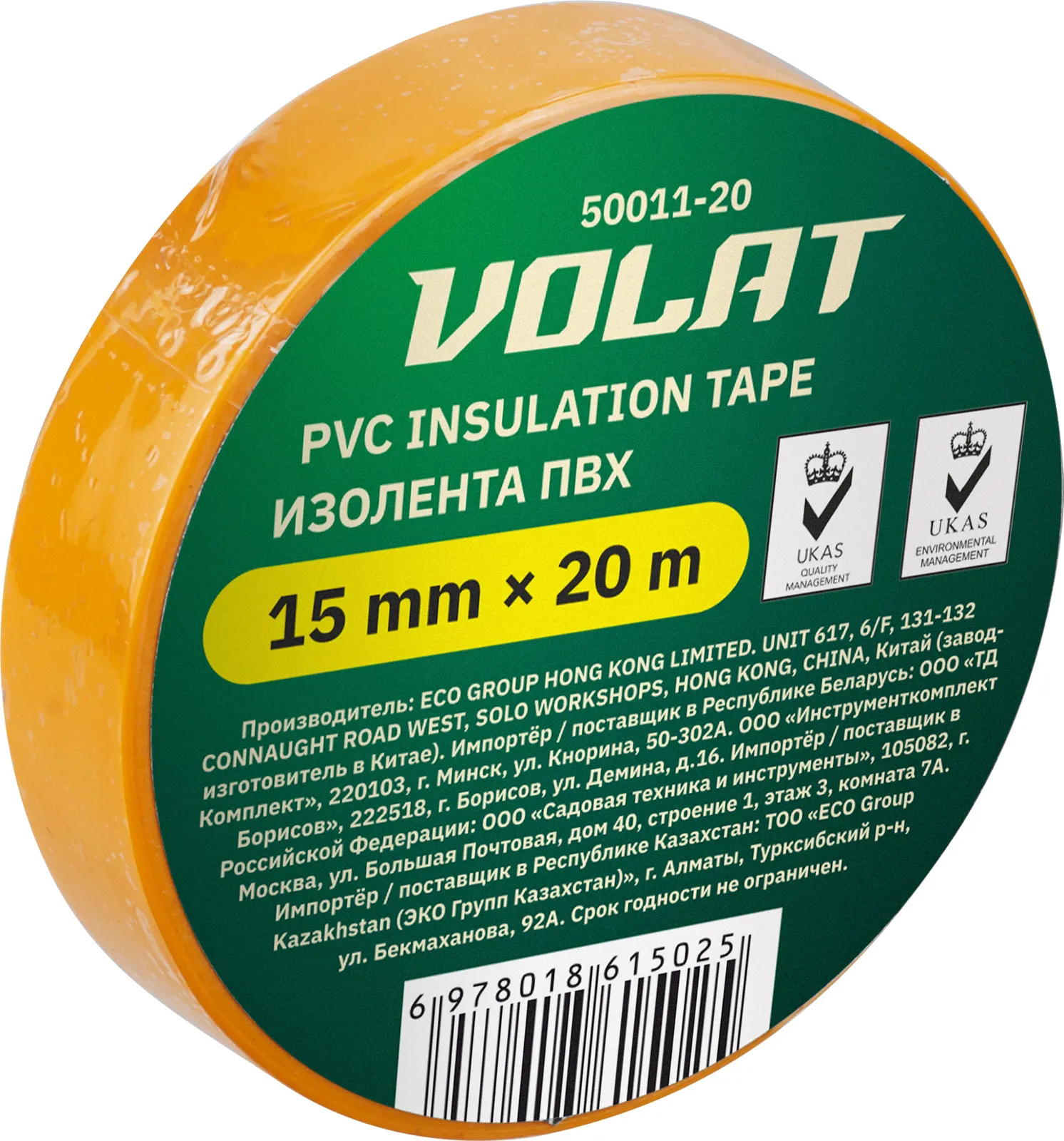Изолента ПВХ 15ммх20м желтая ВОЛАТ