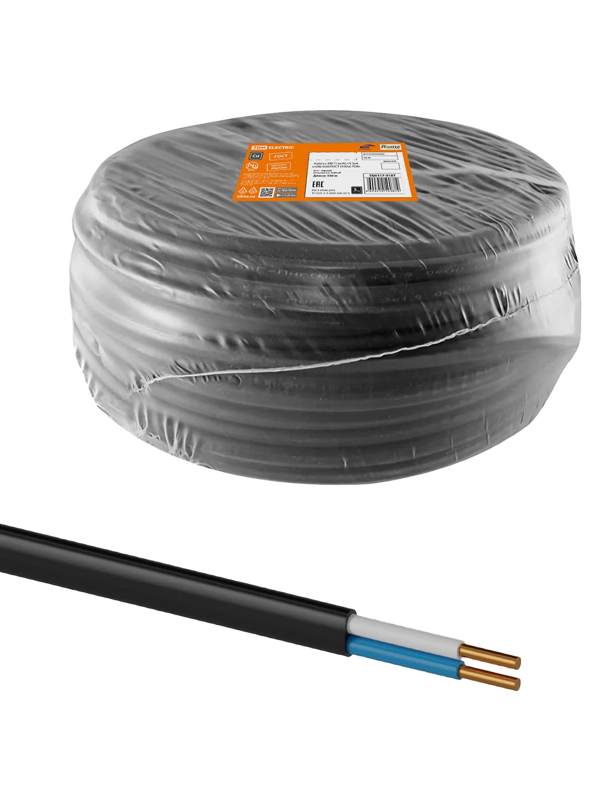 Кабель ВВГ-П нг(А)-LS 2х4 ок(N)-0,66 ГОСТ (100м) TDM