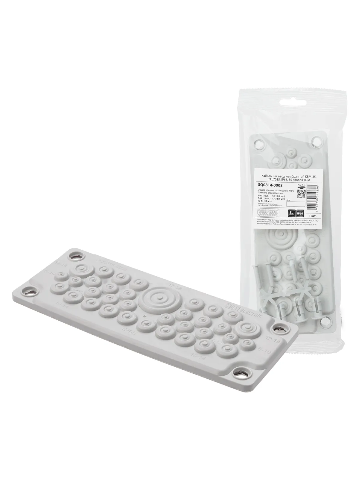 Кабельный ввод мембранный КВМ-35, ТЭП, RAL7035, IP66, 35 вводов TDM