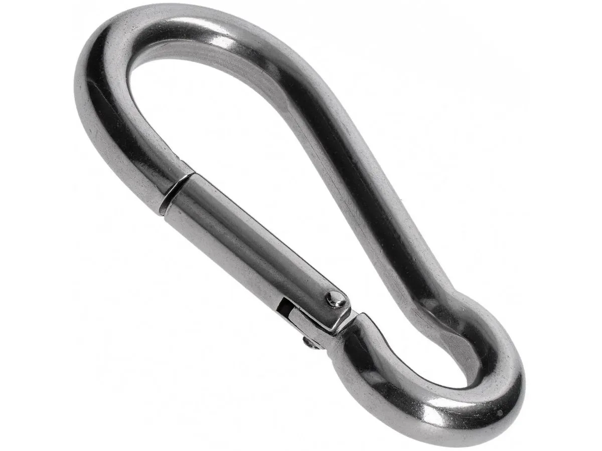 Карабин из нержавеющей стали марки А4 (Aisi 316) представляет собой универсальный и надежный соединительный элемент, предназначенный для быстрого и безопасного сцепления различных объектов. Его конструкция включает в себя овальную форму и подпружиненную защелку (тип С), которая обеспечивает простоту использования и предотвращает случайное рассоединение. Карабин не предназначен для подъема людей и грузов.