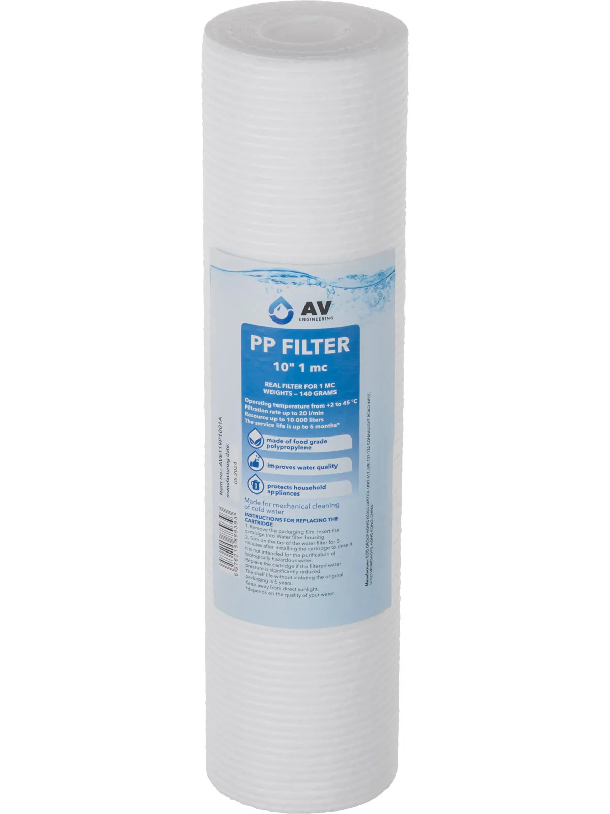 Картридж из вспененного полипропилена 10" 1 микрон, AV Engineering