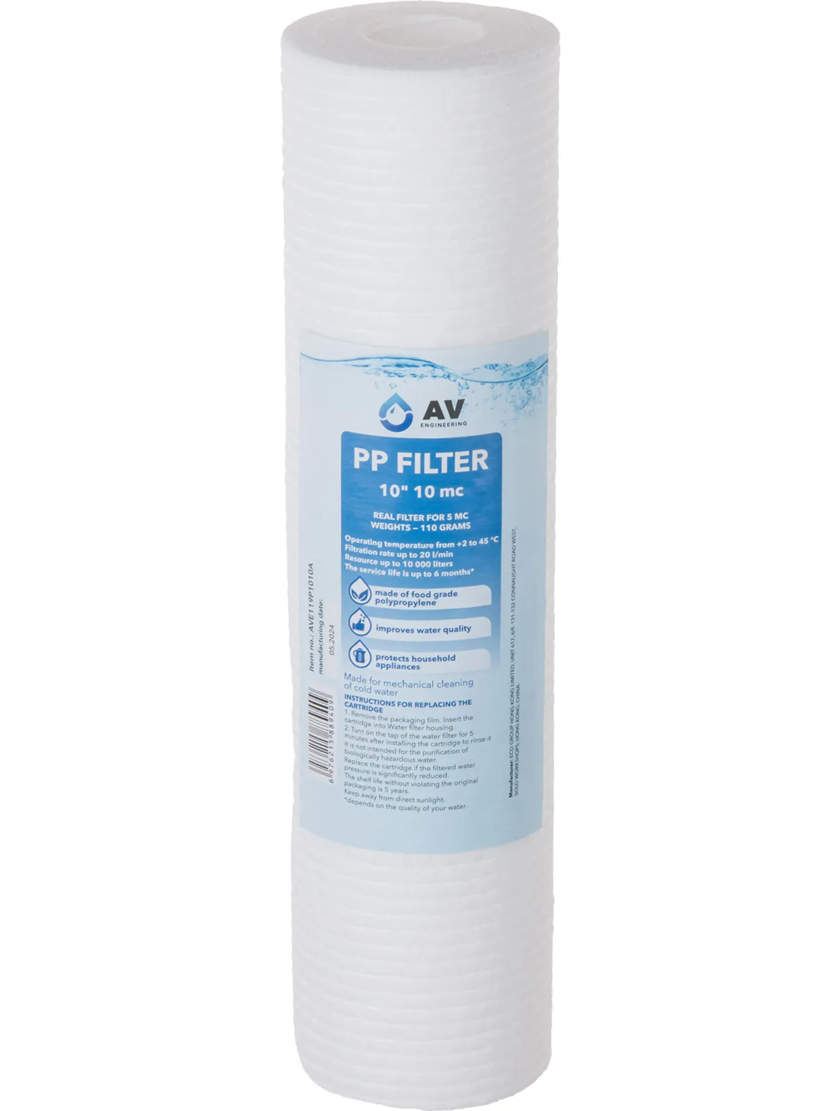 Картридж из вспененного полипропилена 10" 10 микрон, AV Engineering