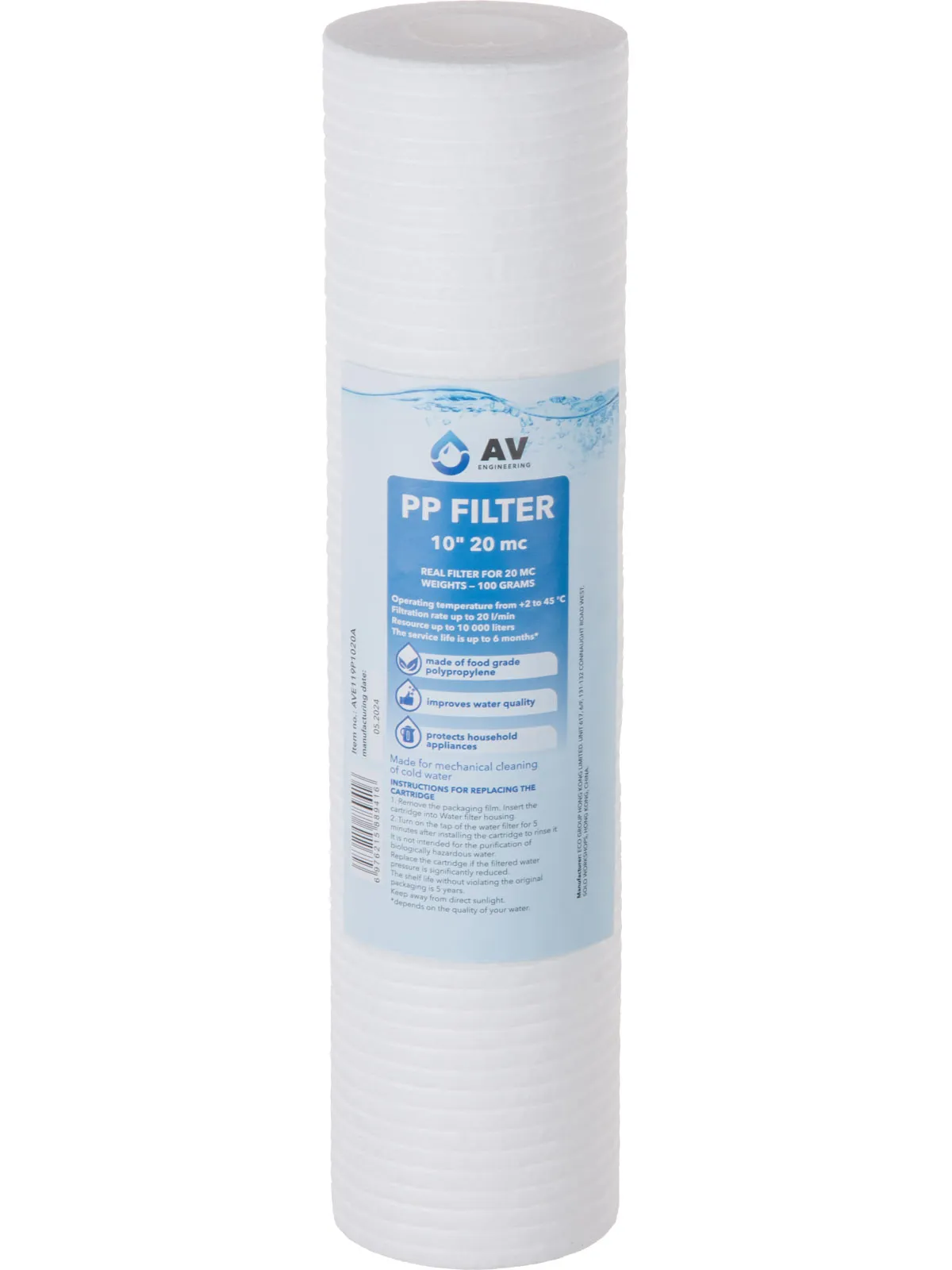 Картридж из вспененного полипропилена 10" 20 микрон, AV Engineering