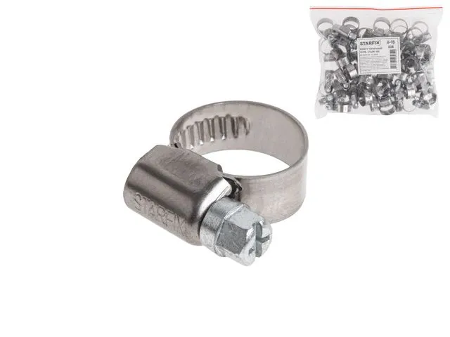 Хомут червячный 16-27 мм, нерж.сталь (W2) (50 шт в пакете) STARFIX