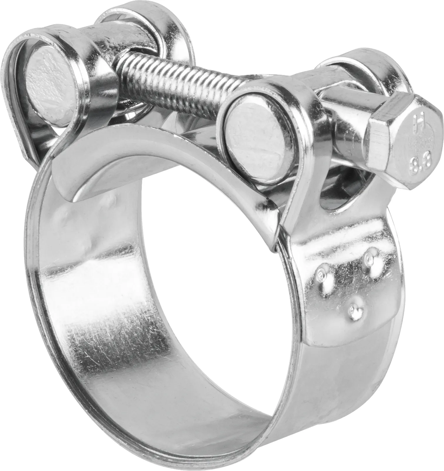 В конструкцию силового хомута входят: прочный болт с несъемной распоркой, шарниры в петлях корпуса, усиленная лента и предохранительный мостик. Края ленты отбортованы, что позволяет защищать руки от травм и предохранять поверхность шланга от механического повреждения. Для крепления петли корпуса шарнира применяются три сварных точки, что значительно повышает жесткость узла. Болт надежно фиксирует все соединительные элементы, гарантируя прочность и долговечность крепежа. Устройство силовых хомутов обеспечивает их многократное использование, при этом самопроизвольное ослабление хомута — невозможно.