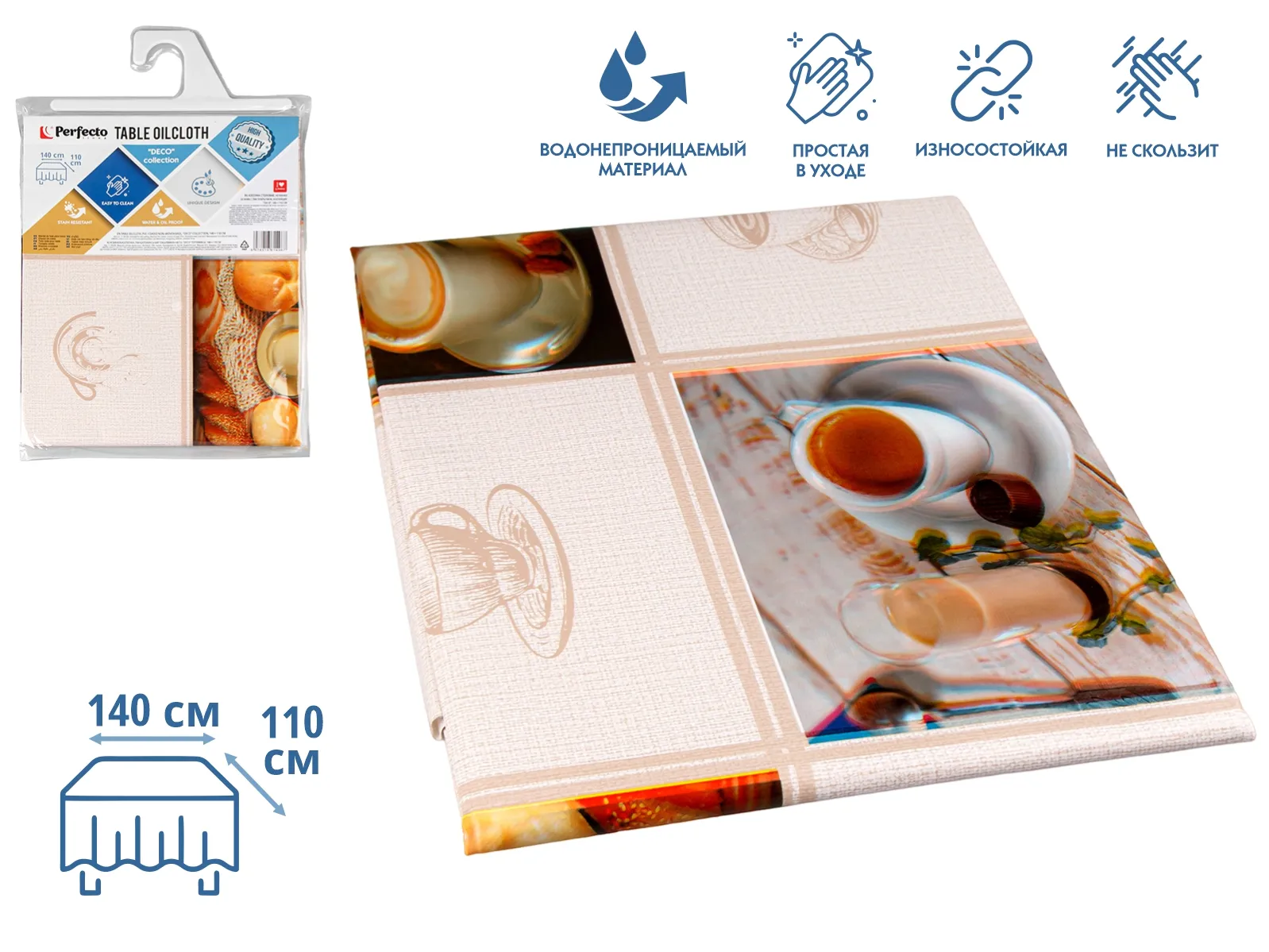 Клеенка столовая, нетканая основа с ПВХ покр., коллекция "DECO", 140х110 см., PERFECTO LINEA