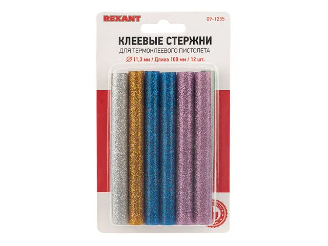 Клеевые стержни d=11,3 мм, L=100 мм, цветные с блестками (упак. 12 шт.) (блистер) REXANT