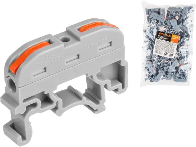 Клеммы соединительные ЮПИТЕР обеспечат быстрый монтаж и демонтаж проводников без дополнительных инструментов благодаря рычажку.