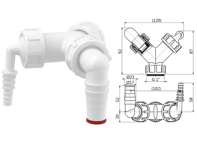 Колено с двумя штуцерами G1"/8-23 c обратными клапанами, Alcaplast