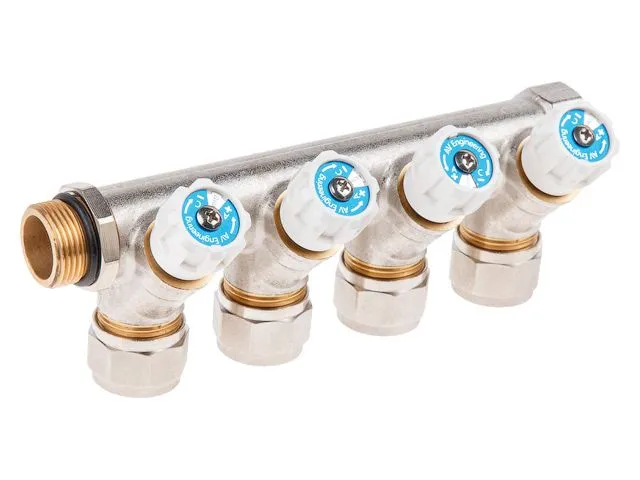Коллектор с отсекающими вентилями, 3/4" х 4 вых. (16 х 2.0), AV Engineering