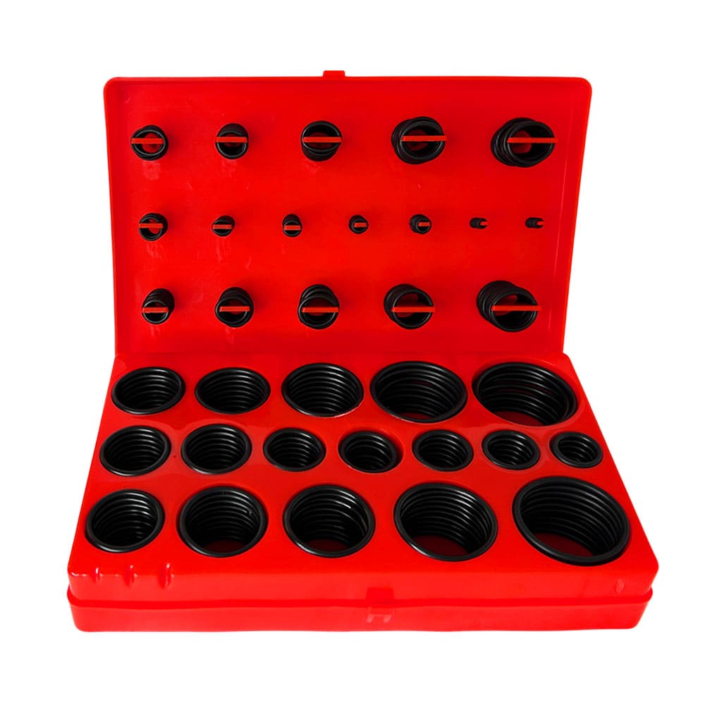Множество полезных универсальных уплотнительных колец в пластиковом органайзере Кольца устойчивы к воздействию кислот, топлива, масел, высоких температур и др.