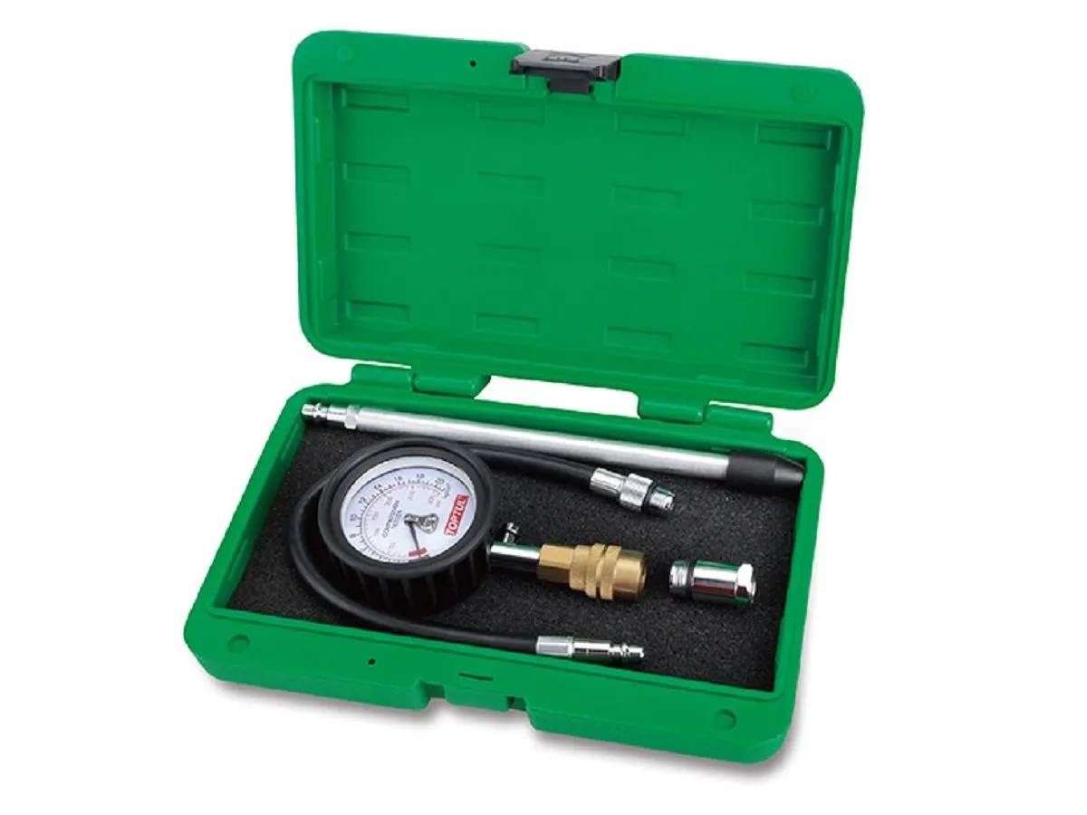 Компрессометр бензиновый со сменными наконечниками TOPTUL JGAI0402 предназначен для изменения компрессии в бензиновых двигателях. Гибкий шланг и алюминиевая трубка очень удобны для измерений в труднодоступных местах, а также под углом. Диапазон работы компрессометра составляет 0 - 300 psi, 0 - 21 кгсм2