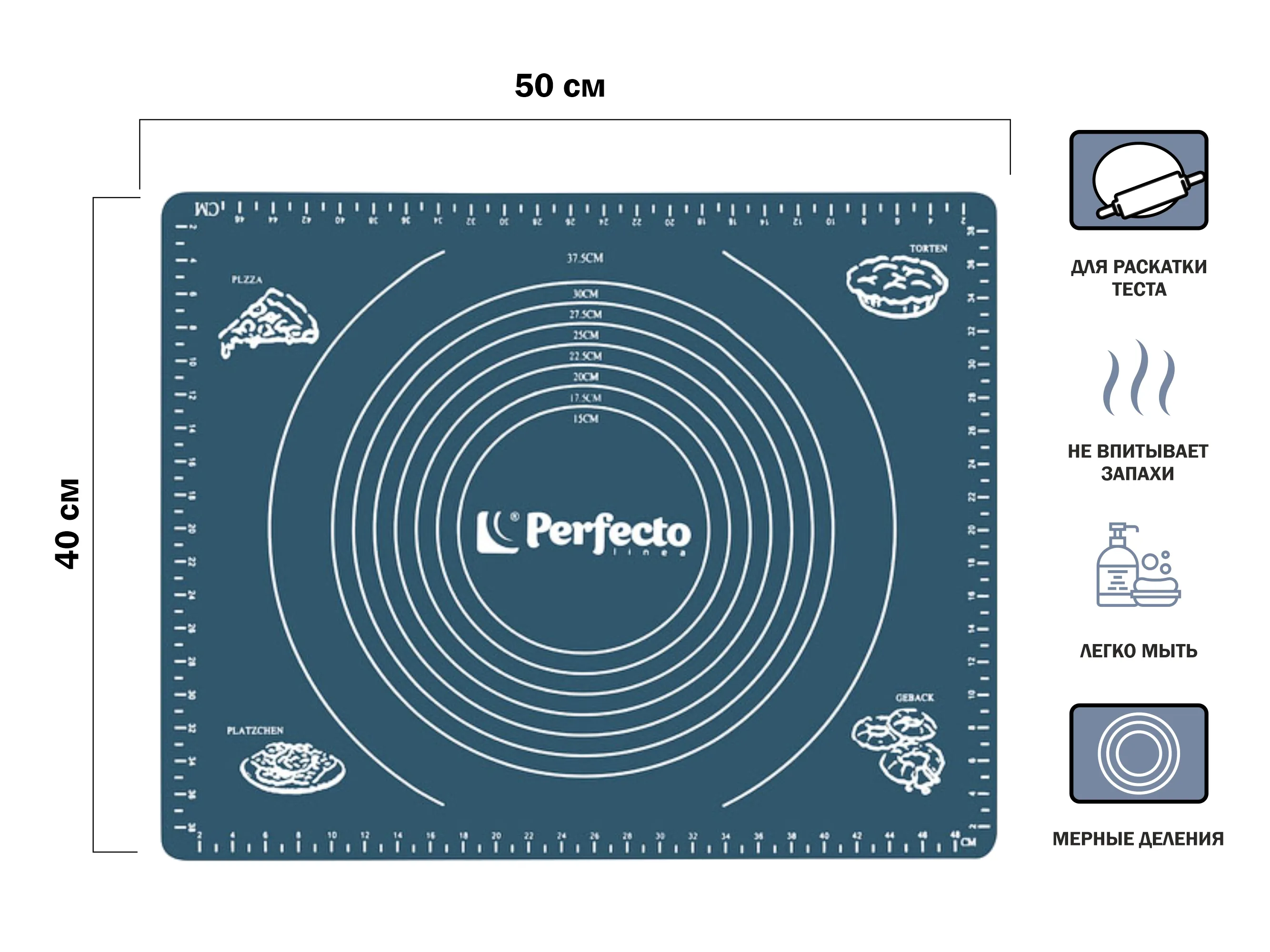Коврик для теста с мерными делениями, силиконовый, 50х40 см, серия BLUESTONE, PERFECTO LINEA