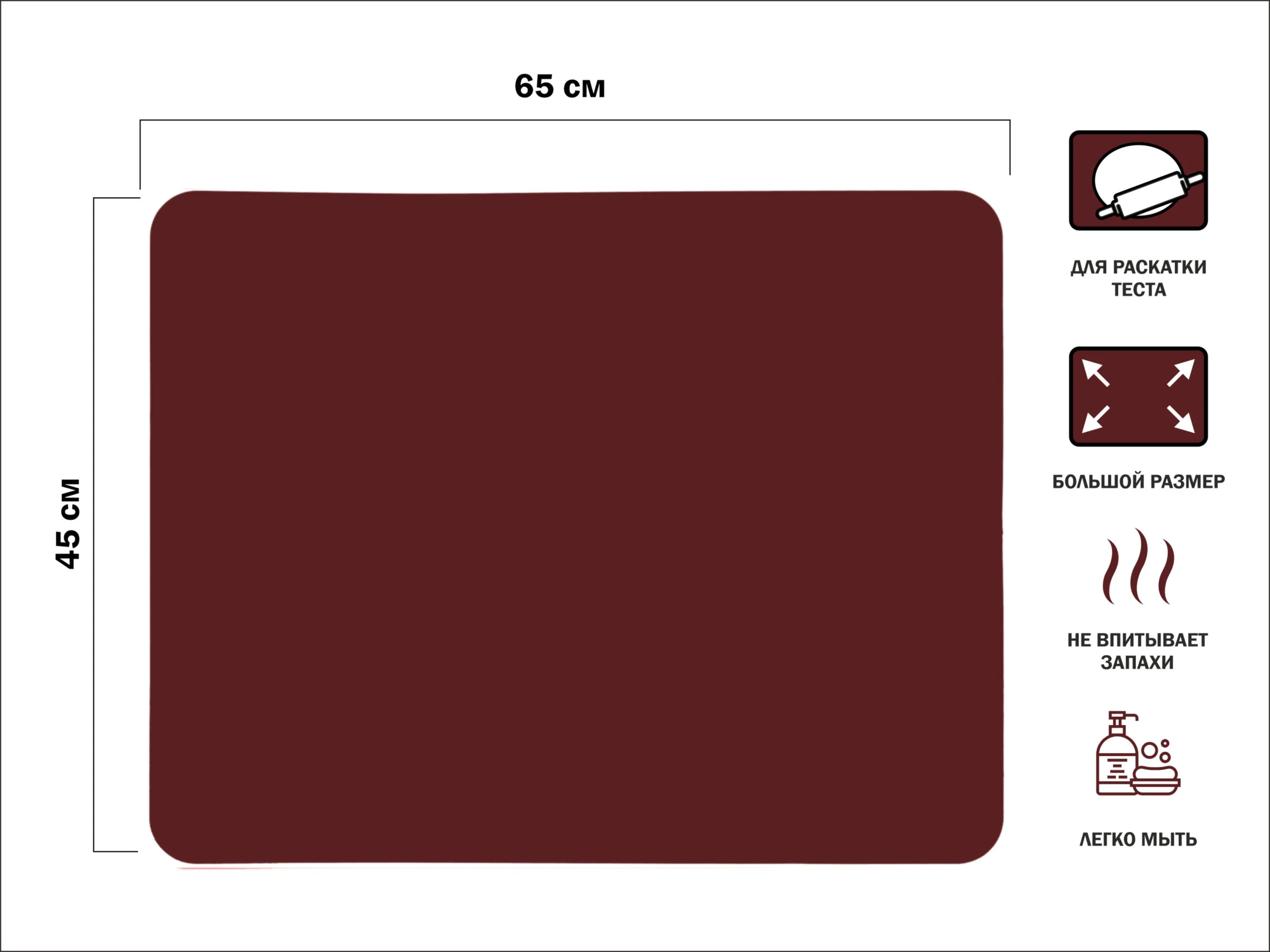 Коврик для теста силиконовый, 65х45 см, BURGUNDY, PERFECTO LINEA