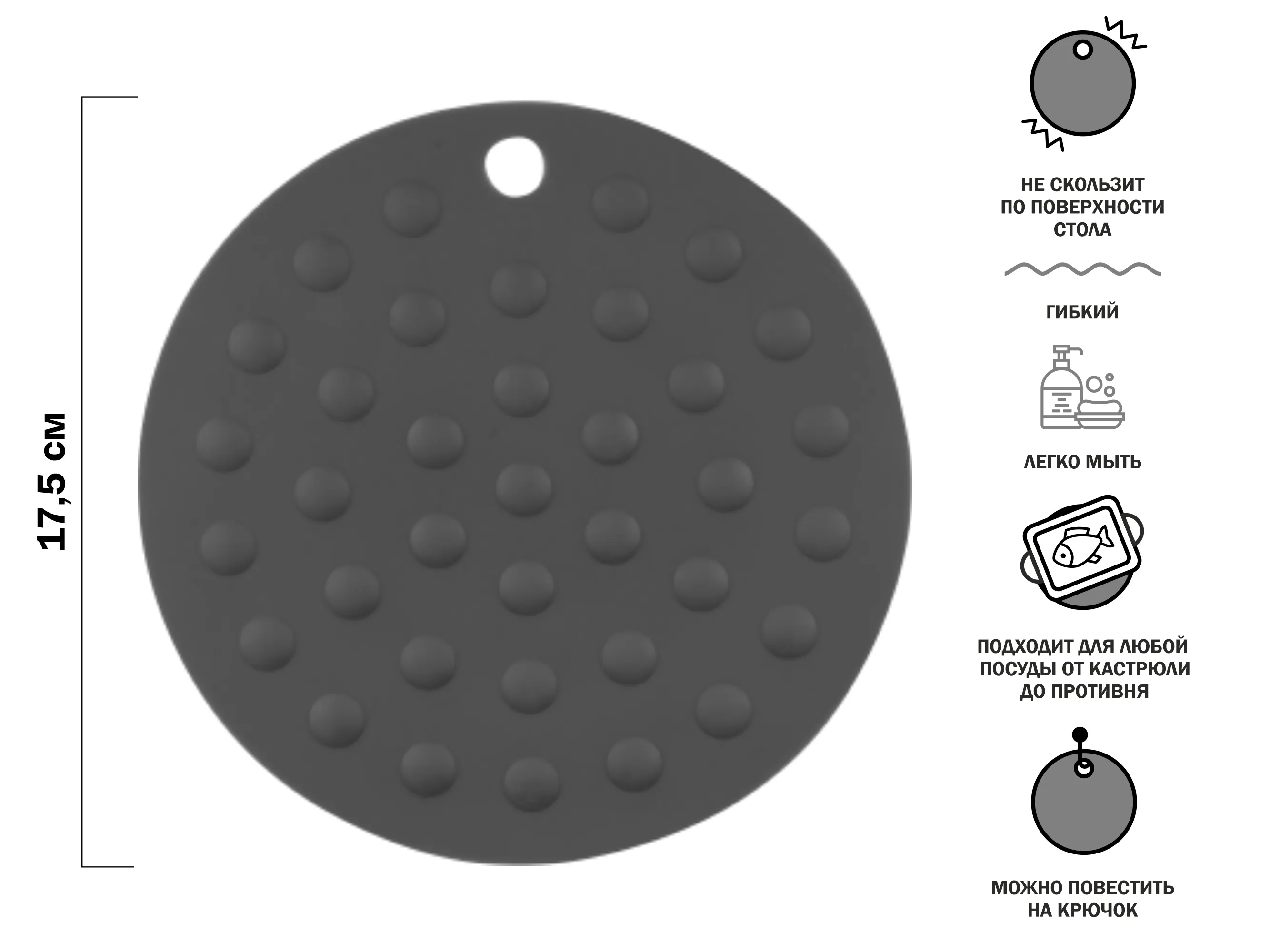 Коврик под горячее силиконовый, круглый, 17.5 х 0.2 см, GRAPHITE, PERFECTO LINEA