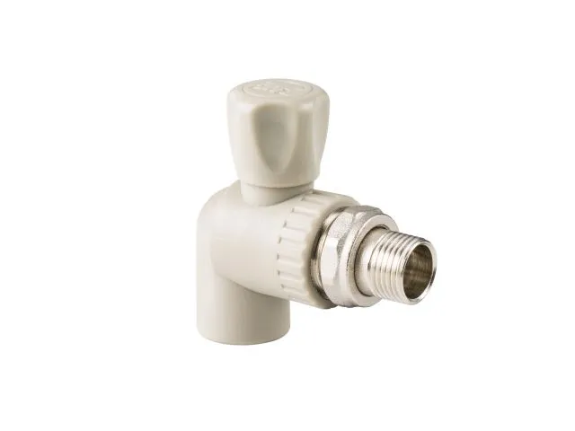 Шаровой кран с полипропиленовым корпусом, прямой. Применяется для подключения радиаторов к разводке из полипропиленовых труб. Позволяет перекрывать поток теплоносителя через отопительный прибор. Подключение крана к радиатору производится с помощью латунного никелированного полусгона, закрепленного на закладной детали накидной гайкой. Соединение с трубой – раструбной сваркой.