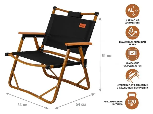 Кресло складное (садовое), черный/дерево, ARIZONE