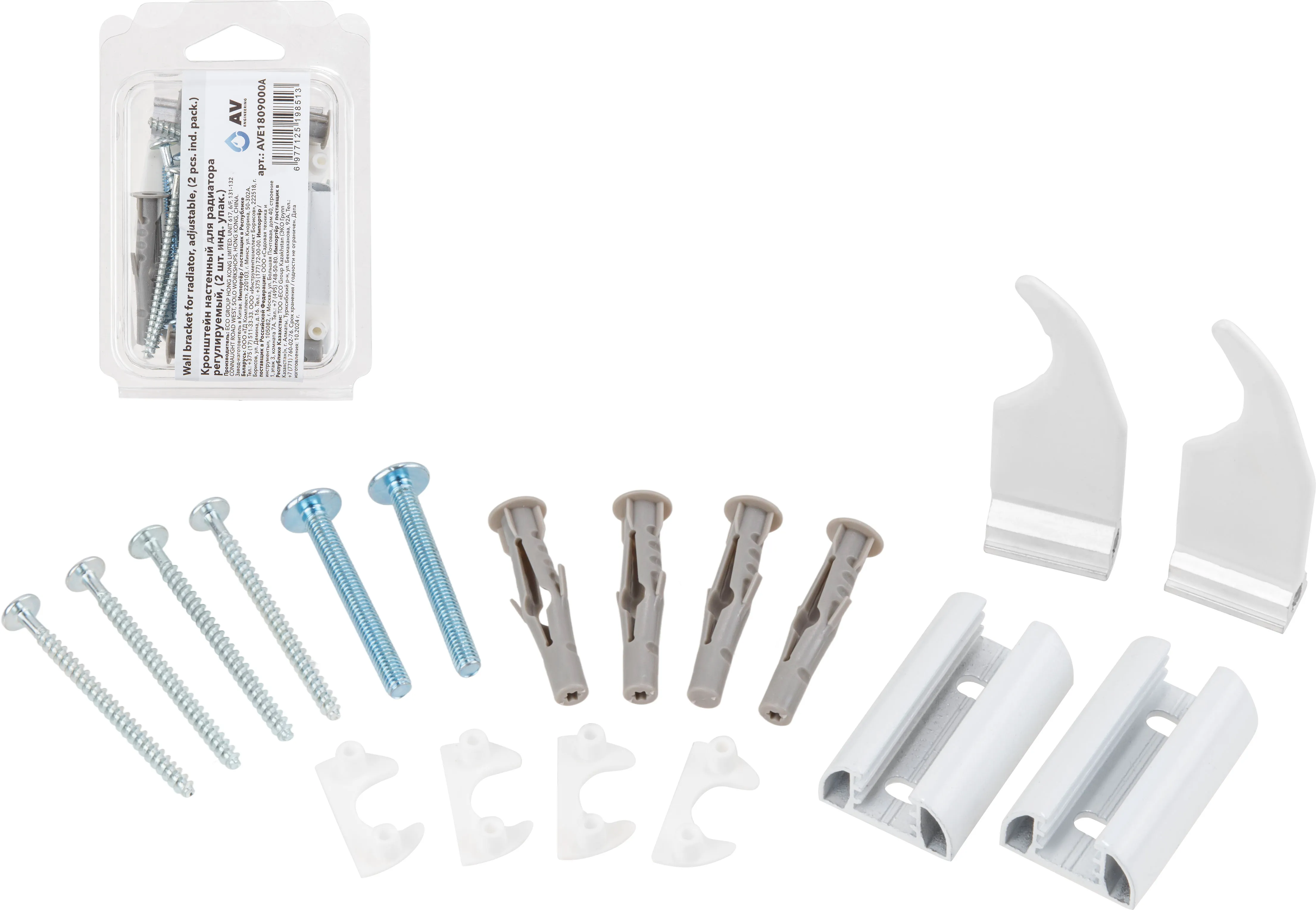 Кронштейн настенный для радиатора регулируемый, (2 шт. инд. упак.), AV Engineering