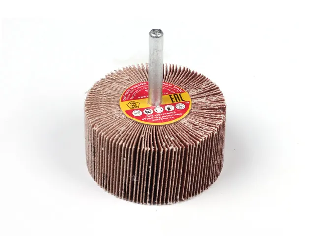 Круг лепестковый с оправкой, используют для шлифования и полирования труднодоступных поверхностей, снятия заусенцев в отверстиях, удаления окалины, ржавчины.
