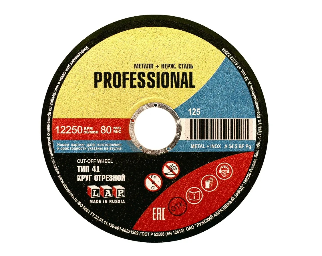 Круг отрезной 125х1.2x22.2 мм для металла PROF LUGAABRASIV