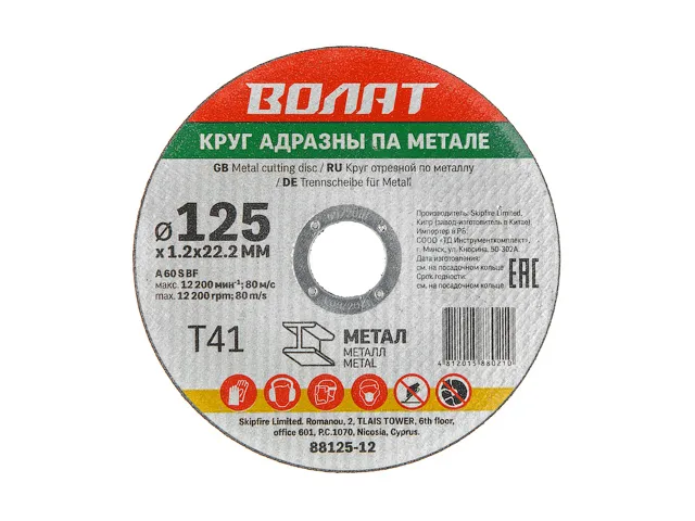 Круг отрезной 125х1.2x22.2 мм для металла ВОЛАТ