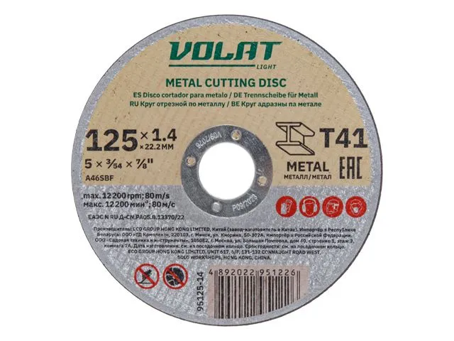 Круг отрезной 125х1.4x22.2 мм для металла ВОЛАТ LIGHT