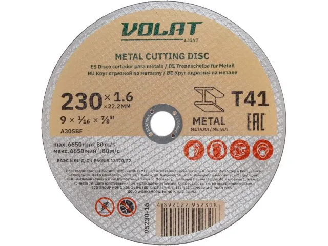 Круг отрезной 230х1.6x22.2 мм для металла ВОЛАТ LIGHT