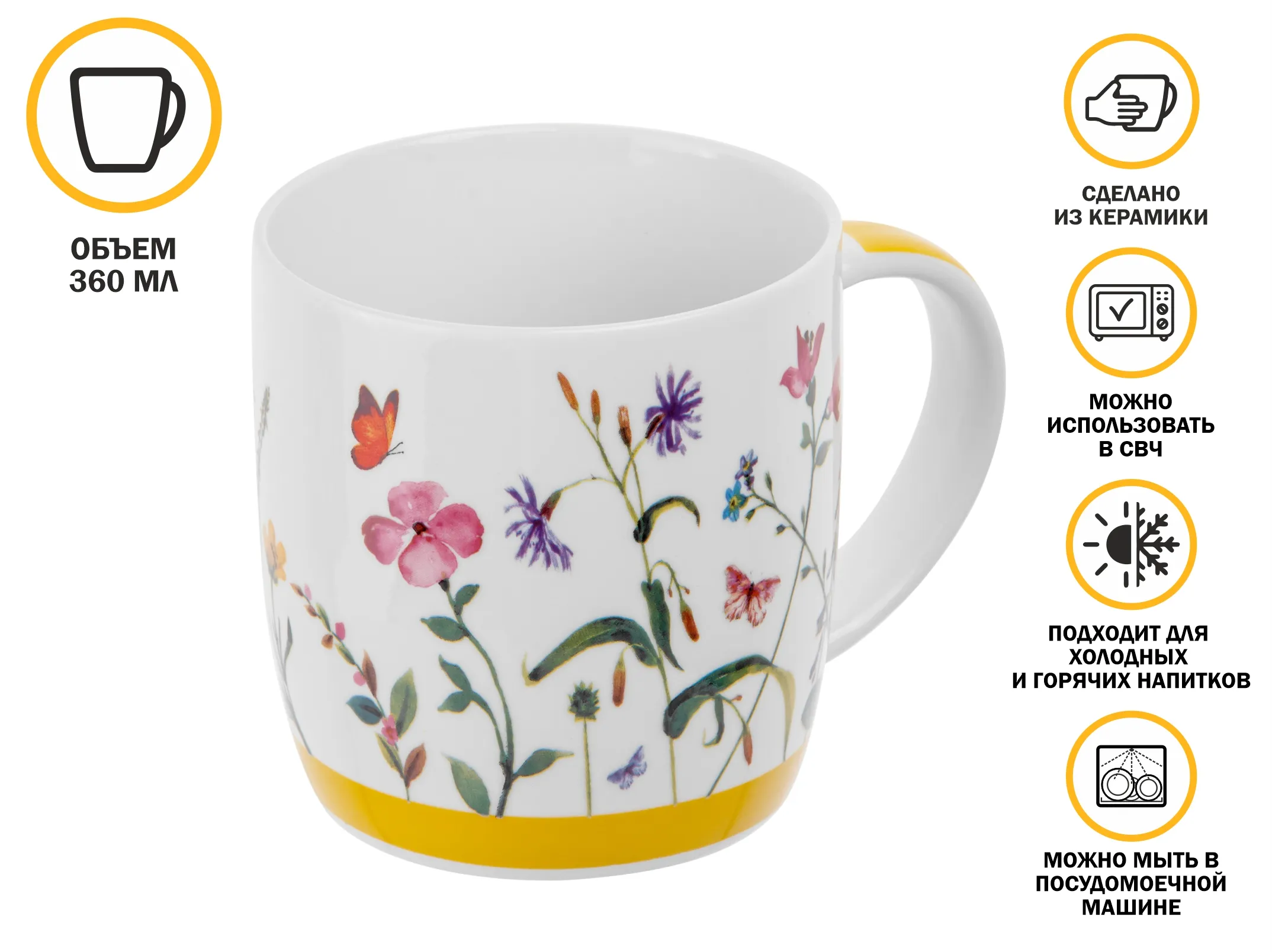 Кружка керамическая, 360 мл., SUMMER MELODY-1, PERFECTO LINEA