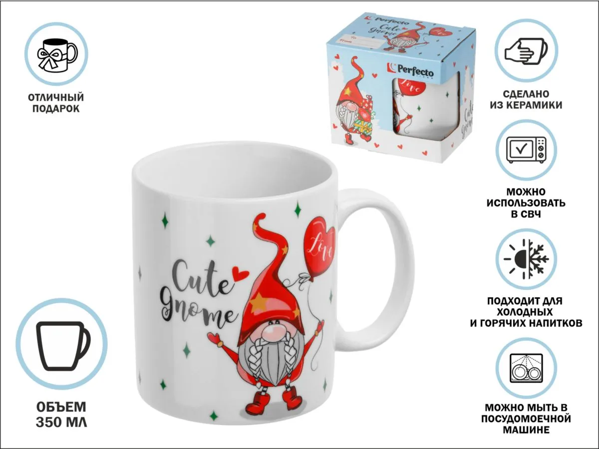 30-202521 Кружка керамическая, 350 мл., CUTE GNOME-1, PERFECTO LINEA,