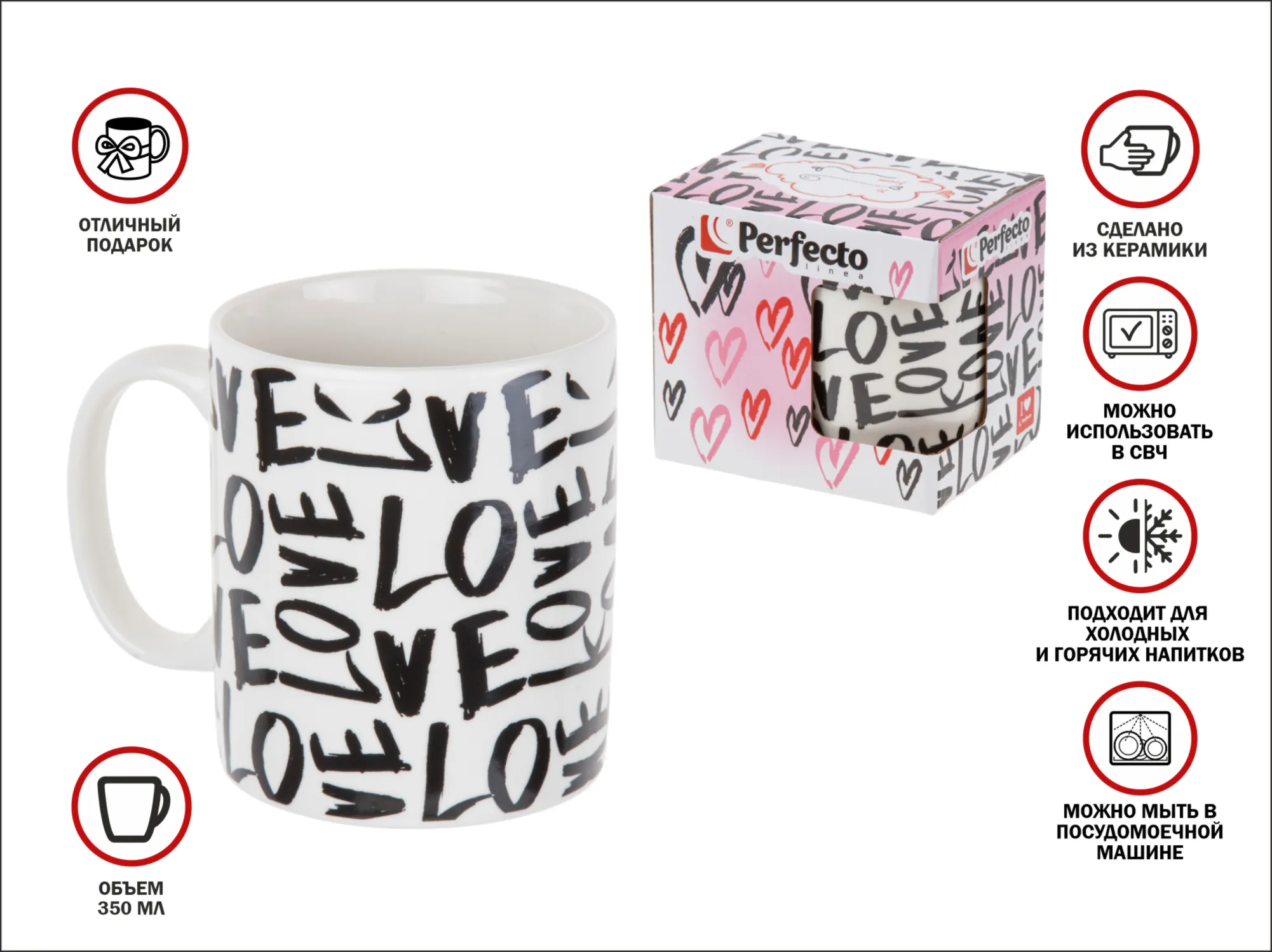 Кружка керамическая, в кор., 350 мл., LOVE-1, PERFECTO LINEA