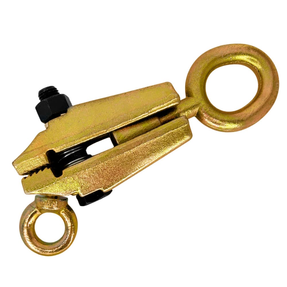 Держатель позволяет обеспечить тягу кузовных элементов в двух направлениях. Болтовой коробчатый зажим приспособления гарантирует надежное удержание и распределение усилия, что позволяет применять тяговую силу до 2000 кг под углом и до 3000 кг по прямой. Это обеспечивает возможность качественного рихтовки даже при сложных деформациях кузова.