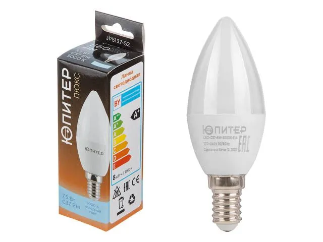 Лампа светодиодная C37 СВЕЧА 7,5 Вт 170-240В E14 5000К ЮПИТЕР ЛЮКС