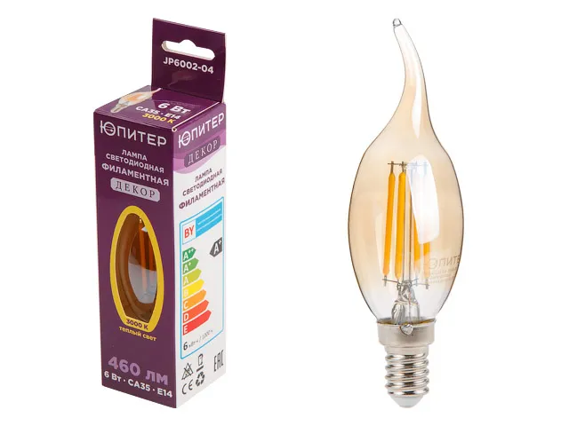 Лампа светодиодная филаментная CA35 СВЕЧА НА ВЕТРУ 6 Вт E14 3000К ЮПИТЕР ДЕКОР