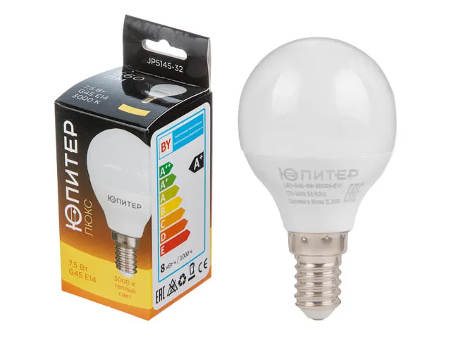 Лампа светодиодная G45 ШАР 7,5 Вт 170-240В E14 3000К ЮПИТЕР ЛЮКС
