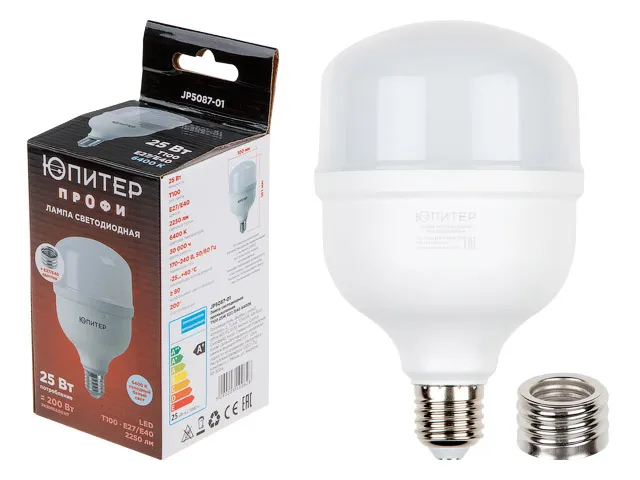 Лампа светодиодная промышл. T100 25 Вт 170-240В E27/E40 6400К ЮПИТЕР