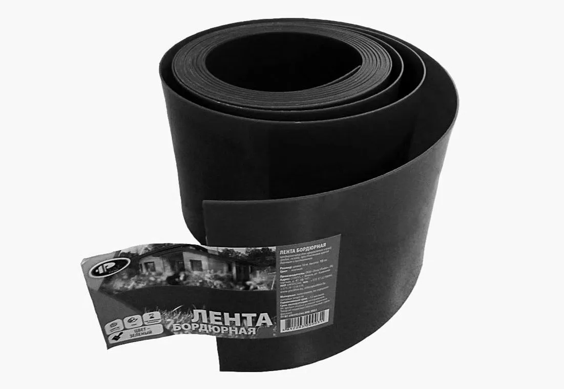 Лента для разделения грядок от газона, разделения разных грунтов и посадок, ограждения зоны посадки от зон сорняков, для оформления дорожек, клумб, цветников, для создания композиций ландшафтного дизайна, может также использоваться для герметизации в теплицах по периметру.