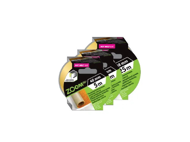 Лента двухсторонняя полипропиленовая клейкая 48ммх25м ZOOM