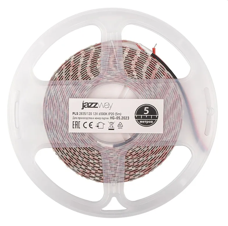 Лента светодиодная PLS-2835/120 (12.0 Вт/м, 960 Лм/м, 6500К, IP20, 12В (5 м в уп.) JAZZWAY