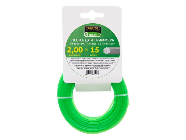Леска ф 2.0 мм х 15 м шестигр. сеч. STARTUL GARDEN