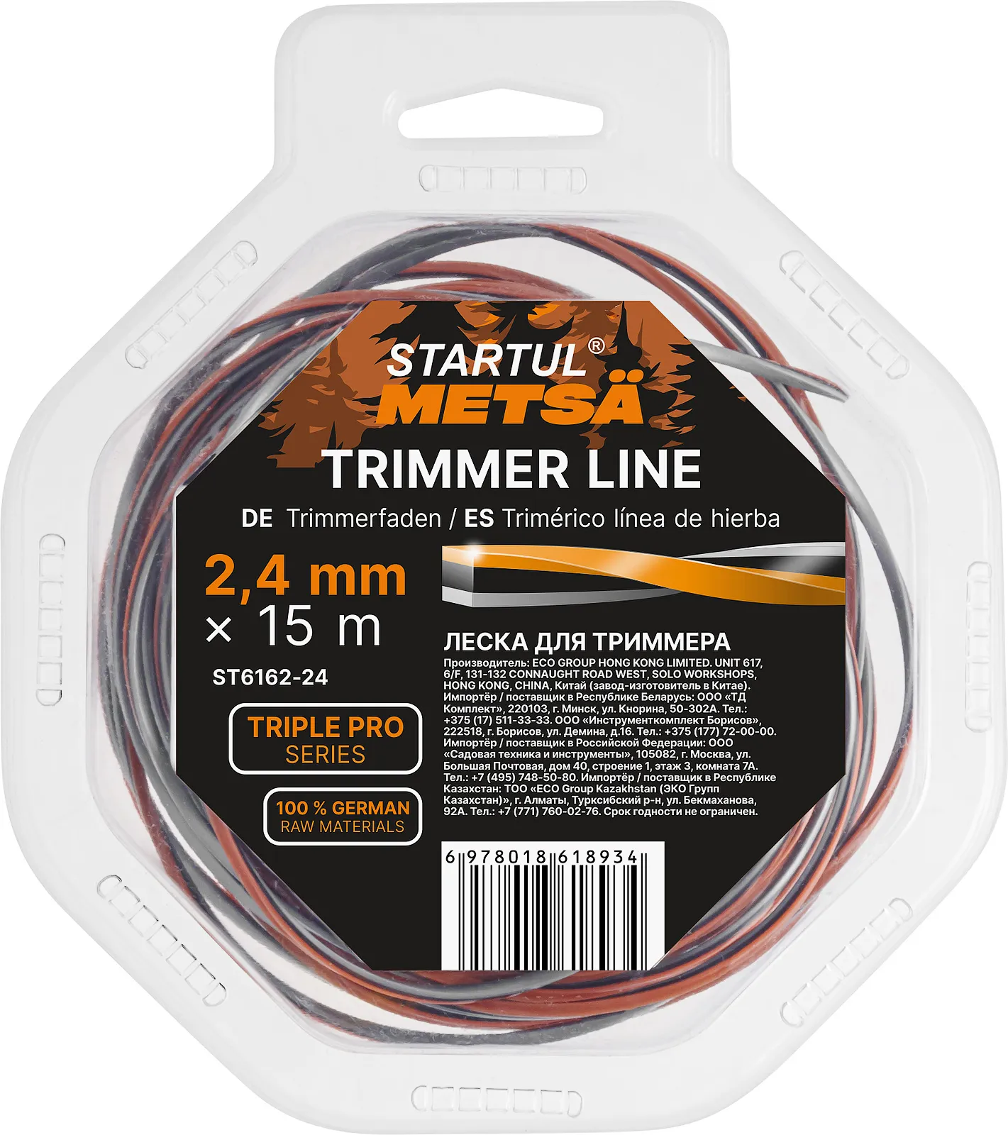 Леска ф 2.4 мм х 15 м витой квадрат сеч. TRIPLE PRO STARTUL METSA