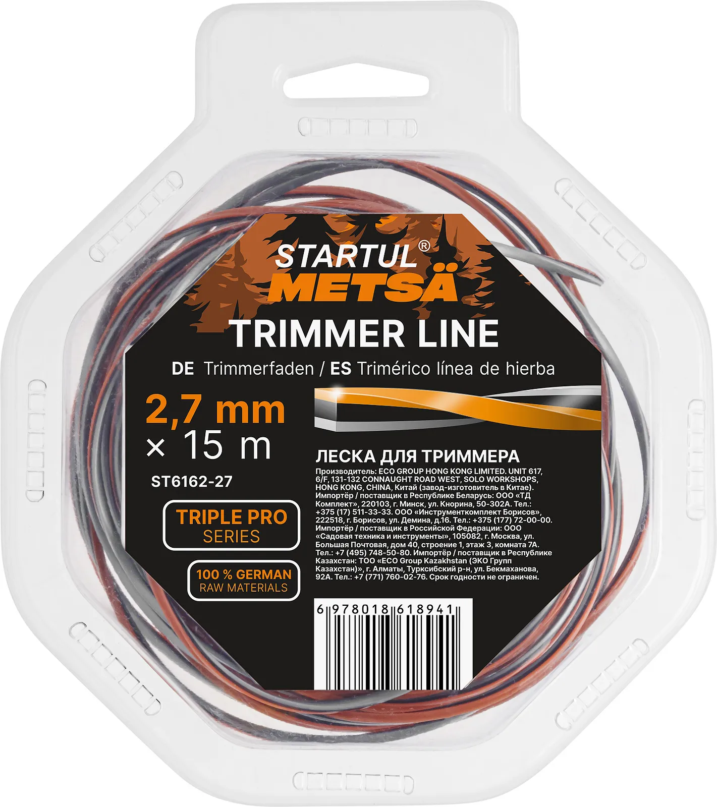 Леска ф 2.7 мм х 15 м витой квадрат сеч. TRIPLE PRO STARTUL METSA