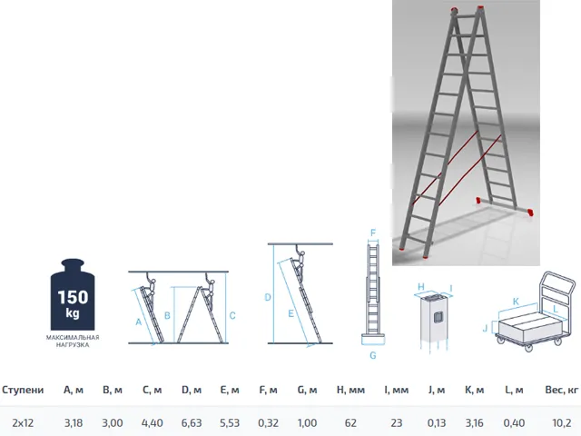 Лестница алюм. 2-х секц. 300/552см 2х12 ступ., 9.5кг PRO STARTUL (ST9947-12)