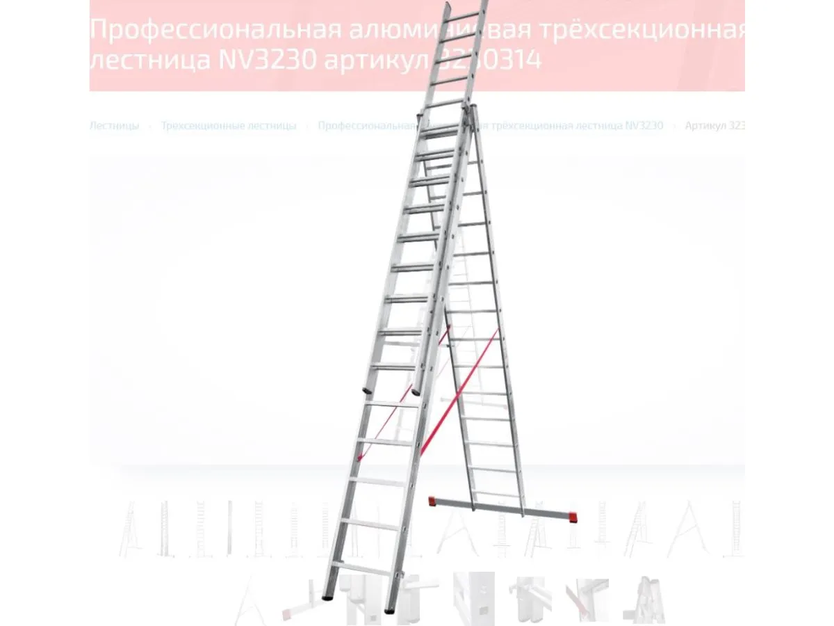 Лестница алюм. 3-х секц. 358/926/380см 3х14 ступ., 23кг NV3230 Новая Высота
