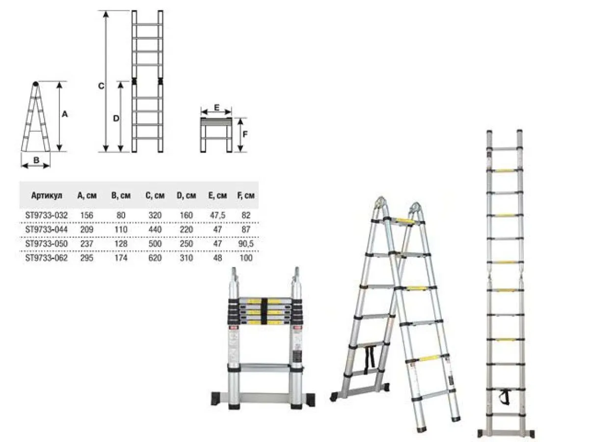Модификация C (высота, см): двусторонняя стремянка (209 см),