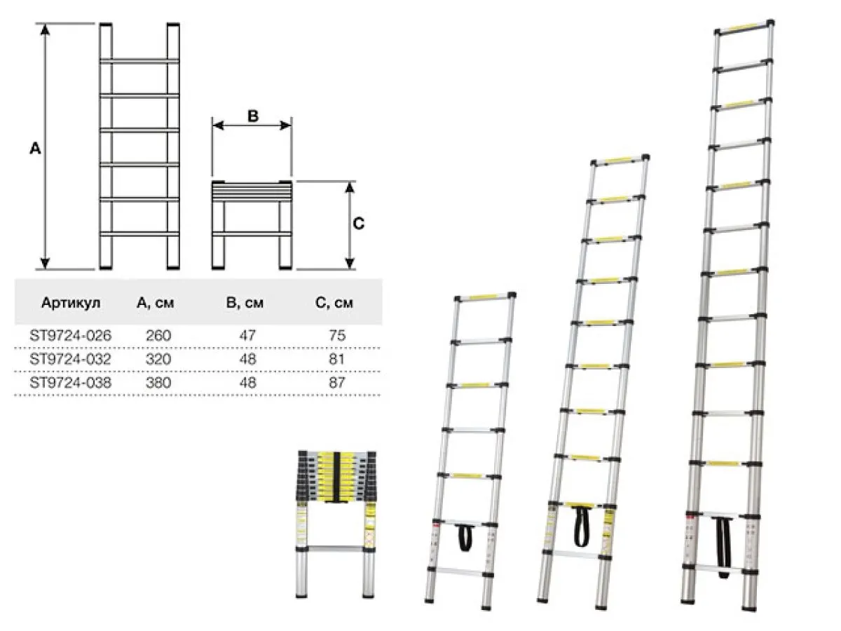Лестница телескопическая односекц. алюм. 320см 8кг STARTUL (ST9724-032)