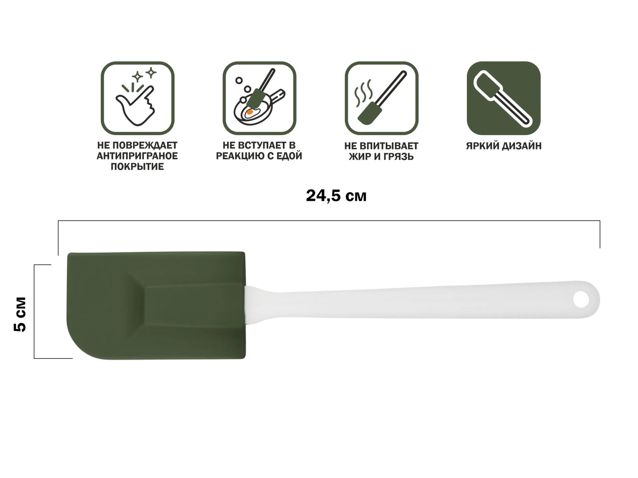Лопатка силиконовая, 24.5 х 5 см, NATURAL GREEN, PERFECTO LINEA