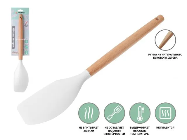 Лопатка силиконовая, 32 х 6 см, EcoVillage, белая, PERFECTO LINEA