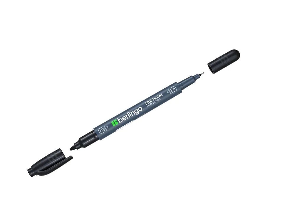 Двусторонний перманентный маркер Berlingo позволяет варьировать толщину линии от 0,5 до 1 мм. Заправлен стойкими и яркими чернилами на спиртовой основе. Подходит для использования на большинстве поверхностей, включая прозрачный пластик - не растекается. Цвет: черный.